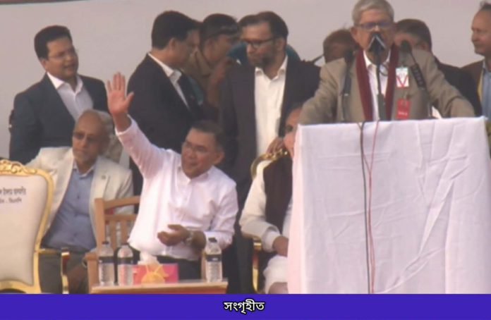 মঞ্চে সাধারণ চেয়ার টেনে বসলেন তারেক রহমান