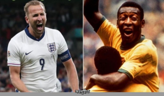 ৭৪তম মিনিটে প্রতিপক্ষের ডি-বক্সে তৈরি গোলসুযোগ কাজে লাগিয়ে কাছ থেকে বল জালে পাঠান কেইন। আর সেই গোলেই পেলার ৭৭ গোলের রেকর্ড সমান করে ফেলেন কেইন। এর আট মিনিট পর দুর্দান্ত এক হেডে নিজের দ্বিতীয় ও ইংল্যান্ডের দ্বিতীয় গোলটি করেন তিনি। কিংবদন্তি পেলে ব্রাজিলের হয়ে ৯২ ম্যাচে করেছিলেন ৭৭ গোল। সেই রেকর্ড ভাঙতে কেইনের প্রয়োজন হয় ১১২ ম্যাচ। চলতি ২০২৫–২৬ মৌসুমে তিনি যে দারুণ ফর্মে আছেন তার প্রমাণ—ক্লাব ও জাতীয় দলের হয়ে মোট ২৩ ম্যাচে তার গোলসংখ্যা এখন ২৮। বায়ার্ন মিউনিখের অপরাজিত যাত্রায়ও তার প্রভাব স্পষ্ট। এমন পারফরম্যান্সই বলছে—কেবল ইংল্যান্ড নয়, বিশ্ব ফুটবলে আরেকটি বড় নাম হিসেবে উঠে আসছেন হ্যারি কেইন।